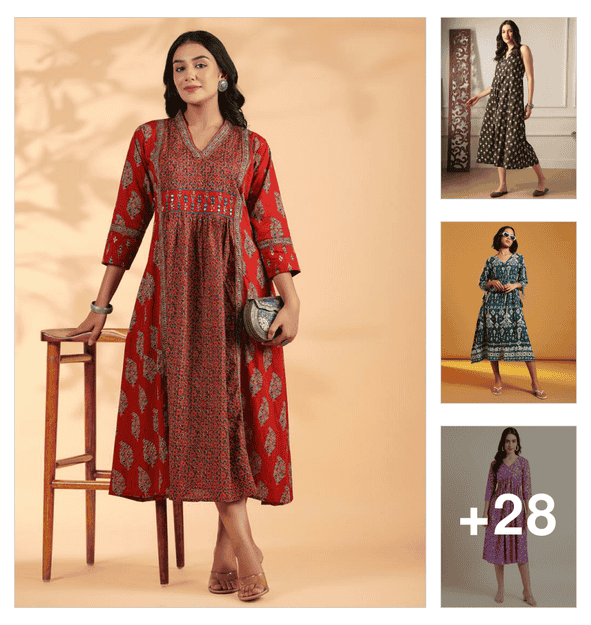 women printed three quarter sleeve ethnic dress