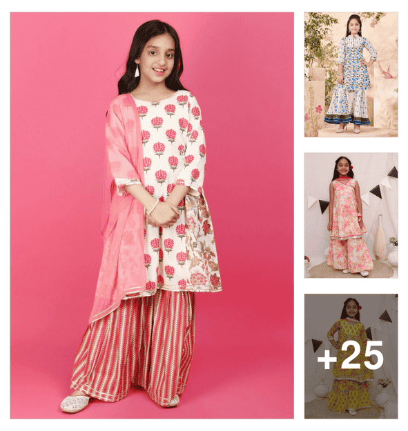 girls printed kurta and palazzo set